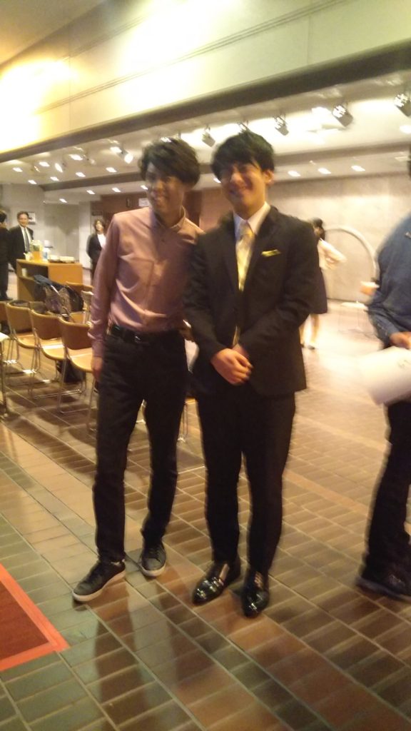 1位になったコンテスタントと写真撮りました。彼から許可もらいましたので載せました。高校3年です。彼の演奏本当に神の領域でした。自然に涙が出て、コンサートとしても満点、構成が手に取るように分かるのでコンクールとしても満点の内容でした。私はとても勝負にならないと痛感させられました。しかも謙虚で紳士的、高校生から色々学ばせていただけました。