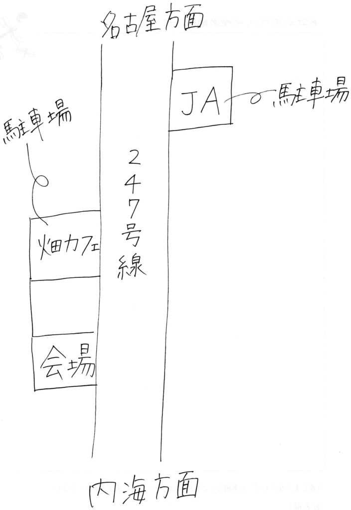 明日のコンサートの駐車場は畑カフェとJAに停められます。13時からは案内係も立ちます。頑張ります。