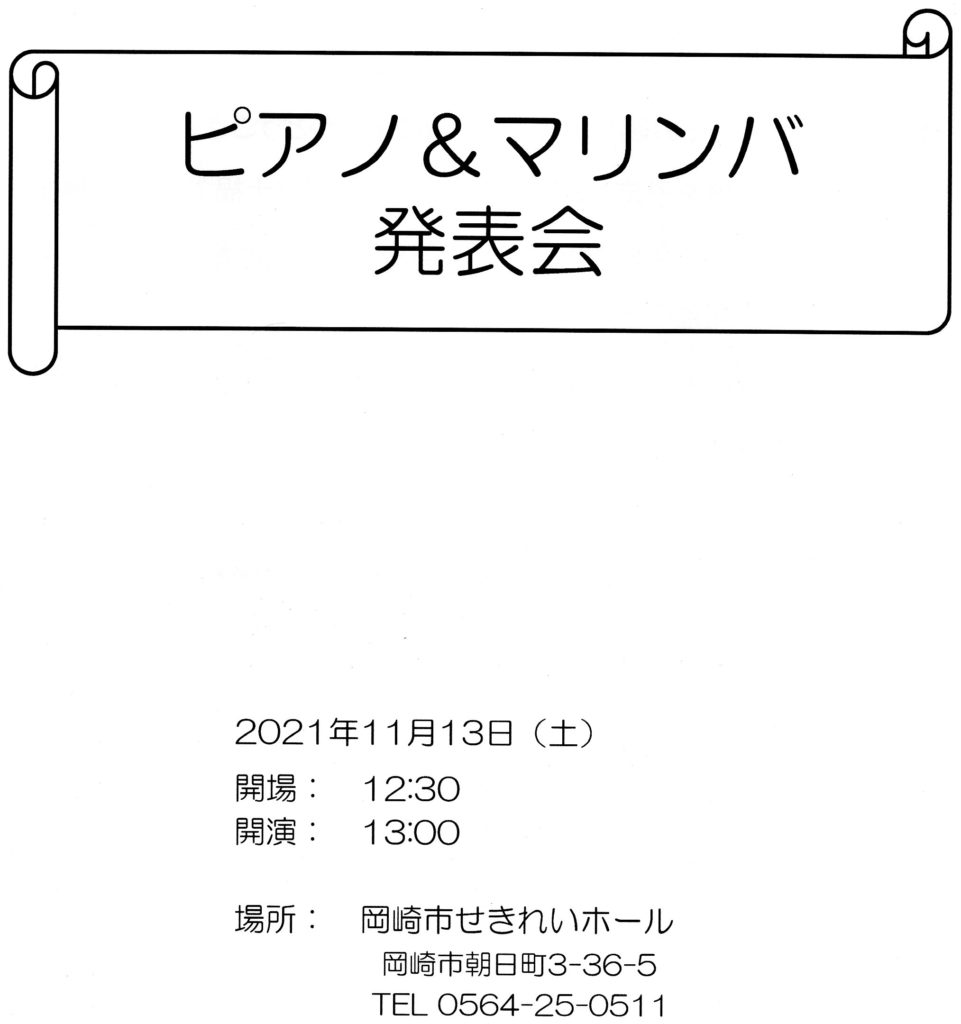 他2名の先生と合同で発表会やりました。私は講師演奏、マリンバ3名の伴奏、岡崎組の弟子2名との連弾で参加させてもらいました。私が朝一番乗りで会場入りし、ピアノを弾くとクセの強い舞台係が「まだダメだよ、先生の指示に従って!」。私一応先生なんだけど、と心の中にとどめました。もし生徒だとしても、自主性を奪う声かけはどうかと思う。