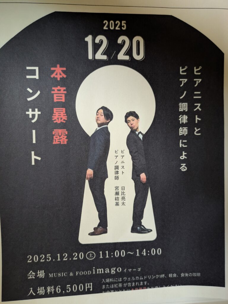 普段、調律師が表舞台に立つことはないので、今までにない取組です。ソロコンサートでは決して語ることのないことをお話します。